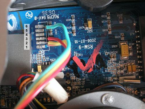And here's the other end of the cable soldered to the pads, and in place behind RSM's head. (yes, I actually soldered with the board in place; it is tight but doable if you are careful!). Double check your soldering and wire positions before connecting anything, lest the magic smoke escape!