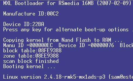 Now for the moment of truth: Connect your cables to the RSM and open the connection in your terminal program. While watching your terminal, turn RSM on. You should immediately see the Linux boot sequence, it starts like this (I cropped the image after capturing a screenshot):