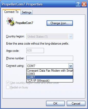 Mine is on COM7, so now fire up HyperTerminal and create a new connection. Under the 'Connect Using' picker, choose your USB com port, then hit Configure: