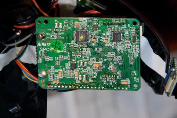 That doesn't jive with what I'm seeing. The (small) camera board in mine is only the sensor ("ccs6003", 20 pin thing) connected to the main board with a ribbon cable (going into the ARM CPU).